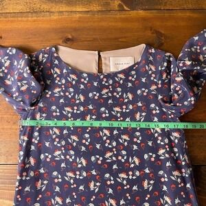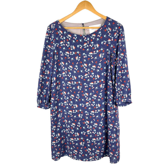Amour Vert Navy Blue Ditsy Floral Silk Shift Dress 3/4 Sleeves Women's Small