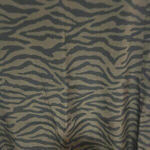 large, silk, army green and black zebra stripes, never worn, elastic waist, slit on side