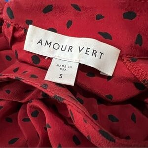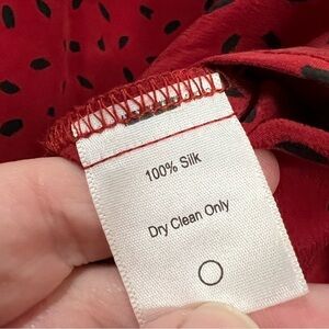 Amour Vert Small Red and Black Geo Print Secretary Blouse Top 100% Silk O2