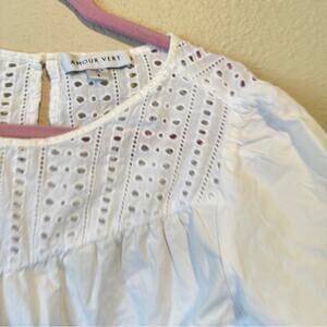 Amour Vert White Organic Cotton Cropped Blouse Womens S Eyelet Puff Sleeve Basic