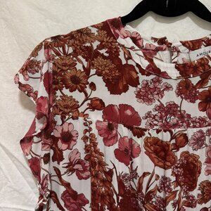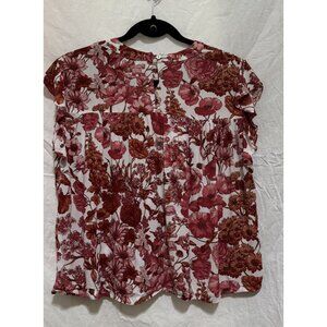 Amour Vert Women's Red Floral Feminine Flutter Sleeve Blouse Sz L