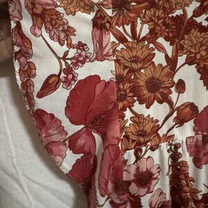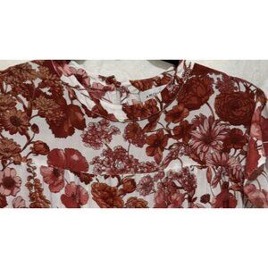 Amour Vert Women's Red Floral Feminine Flutter Sleeve Blouse Sz L Cottagecore