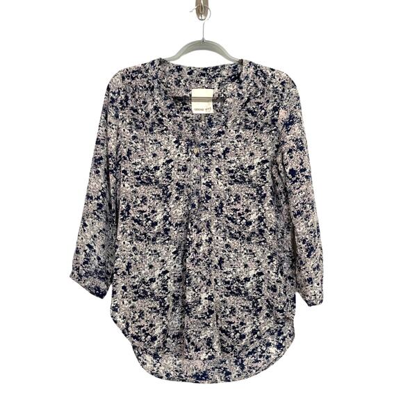 Amour Vert Womens Silk 3/4 Sleeve Popover Tunic Blouse Sz Medium Abstract Print