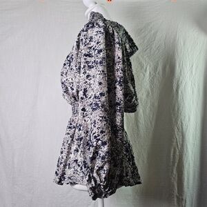 This Amour Vert for Stitch Fix Bryer mini dress in size M features a floral print on silk material with an off-the-shoulder neckline and long sleeves. The dress has a drop waist and a pullover closure, making it easy to wear. With a stylish and trendy design, this dress is perfect for various occasions such as travel, weddings, and parties, blending elements of Western, designer, flower, wedding, sexy, clubwear, and bohemian themes. Additionally, the dress is lightweight, stretchy, and smocked, offering both style and comfort.* the material tag has been removed, research shows material is indeed silk*