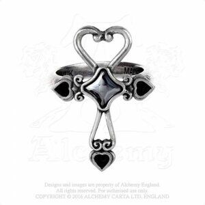 Amourankh Ring – Alchemy Gothic Heart ✦ Ankh ✦ Hematite Cabochon ✦ Rare Pewter
