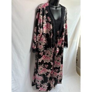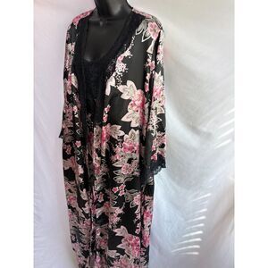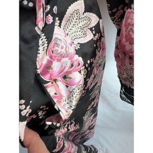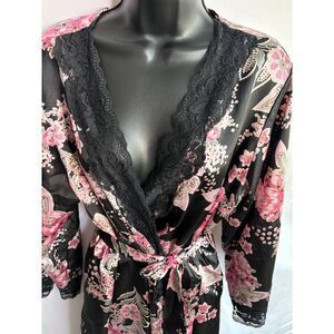 Amoureuse Satin Floral Robe Kimono Size M Lingerie Intimates Black Pink Romantic