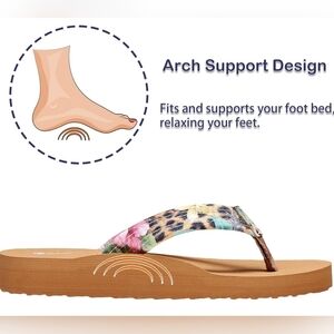 Ampeo Womens Comfy Yellow Leopard Flip Flop Thong Sandals Arch Support Cushioned