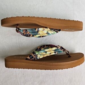 Ampeo Women's Comfy Floral Flip Flop Thong Sandals, Arch Support Cushioned Sole, Yellow Leopard Print