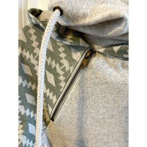 Ampersand Avenue Aztec Double Hooded Sweatshirt S Sweater Weather Green Oatmeal oversized long zipper pockets drawstring thumb holes
