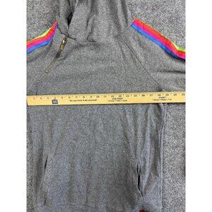 Ampersand Avenue Hoodie Womens Medium Gray Rainbow Stripe Pullover Lightweight