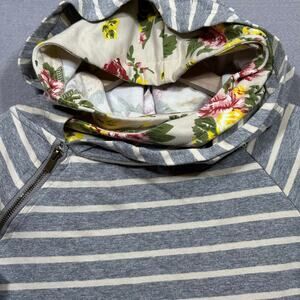 Ampersand Floral Striped Double Hood Zipper Detail Hoodie Medium Casual Comfy
