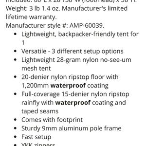 Brand new unopened Ampex one (1) person tent backpacking tent.