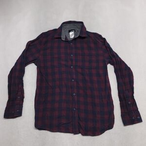 Amplify Buffalo Check Flannel Long Sleeve Shirt Mens Size Medium M Maroon Blue