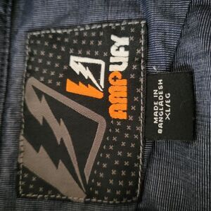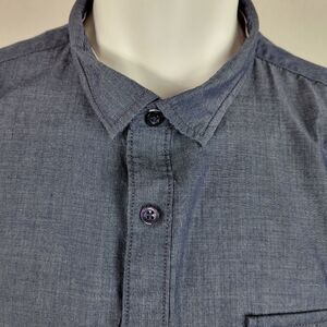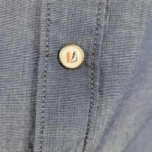 Blue-gray button front collared shirt with a single breast pocket! The single pocket closes with a double flap with a snap on each side and there is a signature snap at the bottom of the button panel! A great shirt for dress-up or casual!