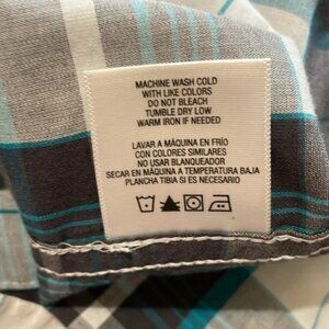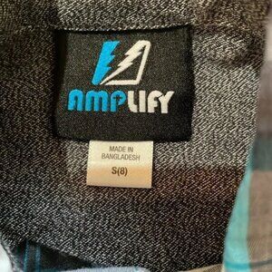 Amplify button down plaid short sleeve shirt blue turquoise white gray Small 8