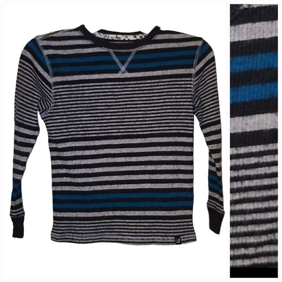 Amplify Soft Thermal Ribbed Knit Long Sleeve Shirt Boys 5/6 Black Stripe Kid Tee
