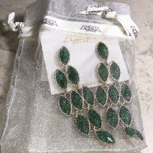 A pair of Amrita Singh chandelier earrings with evergreen stones and gold metal. "Amrita" found on the back of the earrings. NWT!