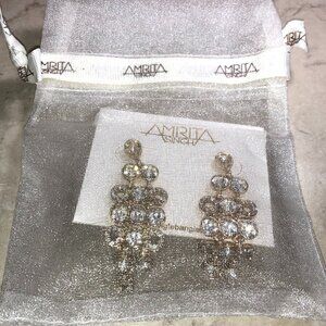 A pair of Amrita Singh chandelier earrings with pretty clear crystals and gold framework. "Amrita" found on the back of the earrings. NWT!