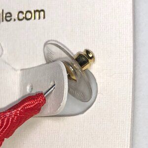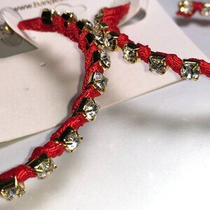 A pair of Amrita Singh hoop earrings with gold metal, red fabric, and small, clear crystals. NWT!