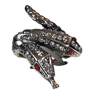Amrita Singh Austrian Crystal Antique Silver Two Head Snake Ring Size 8