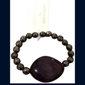 Beautiful bracelet with a shiny, smooth, deep purple amethyst stone and beaded platinum/gunmetal color stretch wristband. Lead and nickel free. New with original tags—never worn.