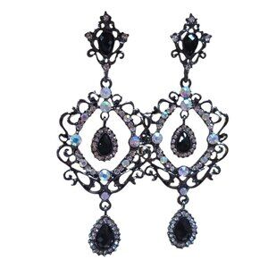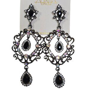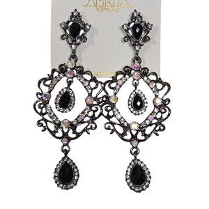Amrita Singh Chandelier Gunmetal Plated Crystal Earrings NWT