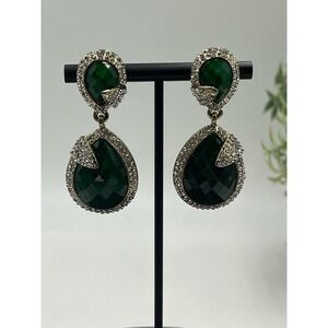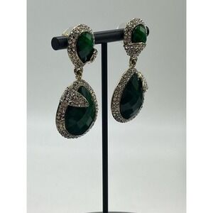 Amrita Singh Gold Tone Austrian Pave Crystal Turquoise Green Teardrop Earrings