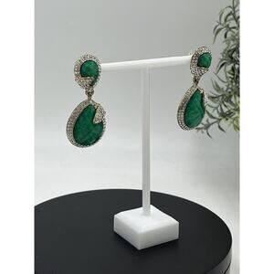 Amrita Singh Gold Tone Austrian Pave Crystal Turquoise Green Teardrop Earrings