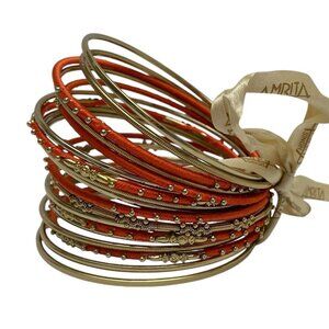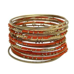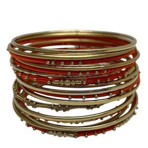 Amrita Singh Gold Tone Bangle Bracelet Set Orange Thread Wrapped 18 Bracelets