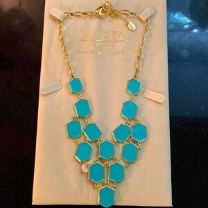 Amrita Singh Noah’s Ark Turquoise and gold statement necklace.Lobster clasp.Adjustable. NWT.
