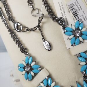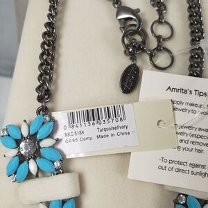 Amrita Singh Women Turquoise Ivory Rhinestone Necklace Southwestern Chunky