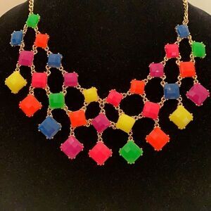 Stunning Amrita Singh necklace has a gold tone finish with bright square stones that cascade in a web like fashion. Chain length is 16” with a 1” extender. No price tag.