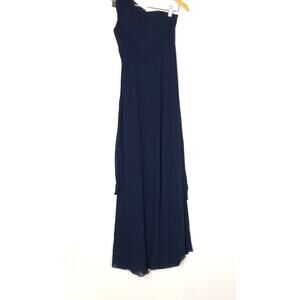 Amsale Athena Dress Bridesmaid One Shoulder Belted Maxi Gown Navy Blue Size 0
