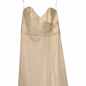 Amsale Blush 100% Silk Ruched Bust Flowy Strapless Maxi Dress Bridesmaid Size 6