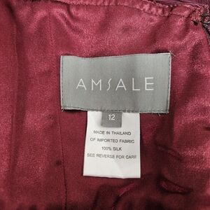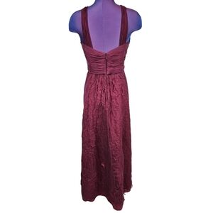Amsale Cerisa Burgundy Crinkle Silk Junior Bridesmaid Gown Size 12 Girls.