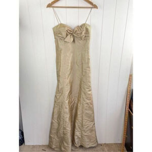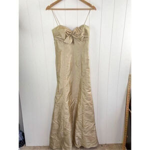 Amsale Champagne Gold Formal Gown with Bow Front Size 4