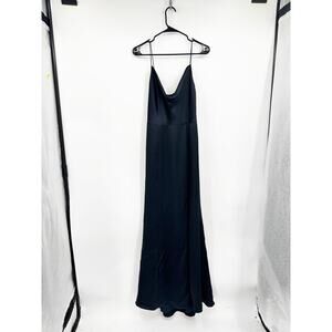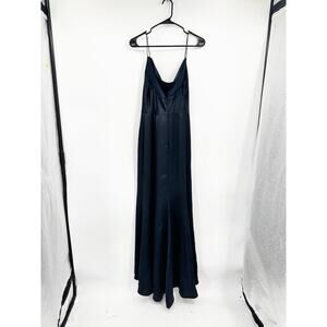 Amsale Chloe Navy Sleeveless Draped Slit Full Length Bridesmaid Cocktail Gown 8