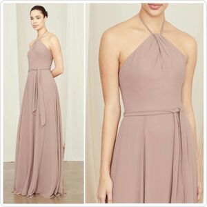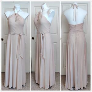 Amsale Colby halter keyhole tie waist floor length gown sz 6