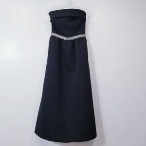 Amsale Faille Rhinestones Strapless A-Line Black Midi Dress
