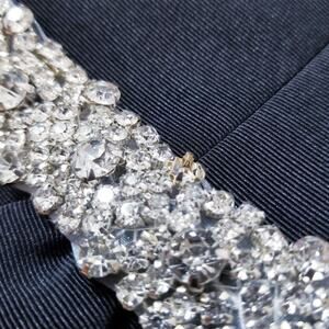 Amsale Faille Rhinestones Strapless A-Line Black Midi Dress with Pockets