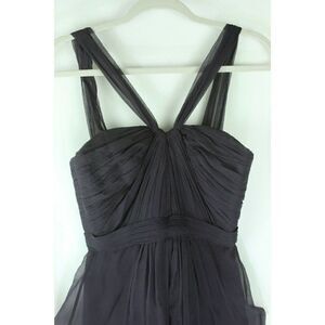 Amsale Inverted V halter Top Bridesmaids Dress Silk Crinkle Chiffon Violet Sz 2