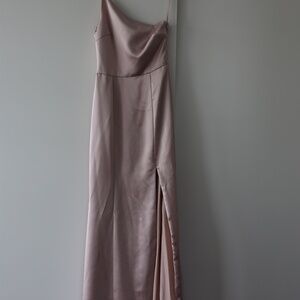 Amsale Kaia Bridesmaid Dress in Rose Quartz, size 2. Worn once for wedding. A few little snags (see photos), but not noticeable at all.