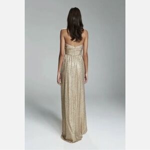Amsale London Gold Sequin Strapless Maxi Dress Women’s Size 12 Wedding