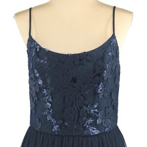 Amsale Maids, Stephanie Dress, Maxi Dress, Navy Dress, Sequin Dress, Lace Dress, Formal Dress, Evening Gown, Bridesmaid Dress, Special Occasion, Size 10, Polyester Dress, Long Dress, Event wear, Black tie event, Formal event, Dance, feminine, elegant, flowy