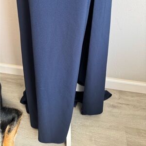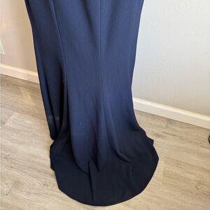 Amsale Navy Square Neck Shift Formal Maxi Dress with Slit Women’s 12 Bridesmaid Prom Simple