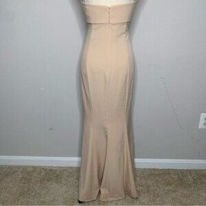 Amsale Nude Beige Spaghetti Strap Maxi Evening Gown