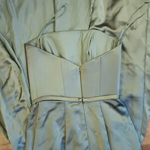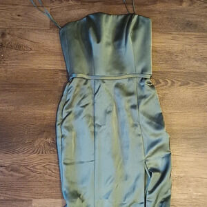 Amsale Olive Green Satin Style Mermaid Slit Formal Dress aaa