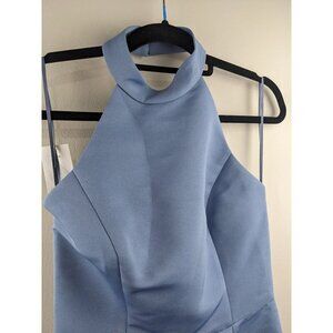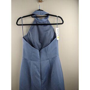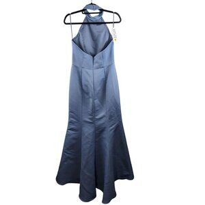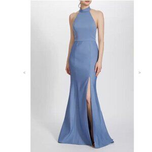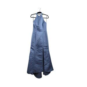 Amsale Shanice Blue Halter Neck Gown Size 8 With Front Slit & Back Zipper Closur