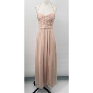 Amsale Silk Gown Pleated Bodice Halter Strapless Light Blush Pink Womens 0