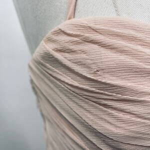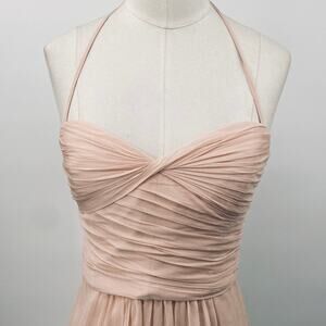 Amsale Silk Gown Pleated Bodice Halter Strapless Light Blush Pink